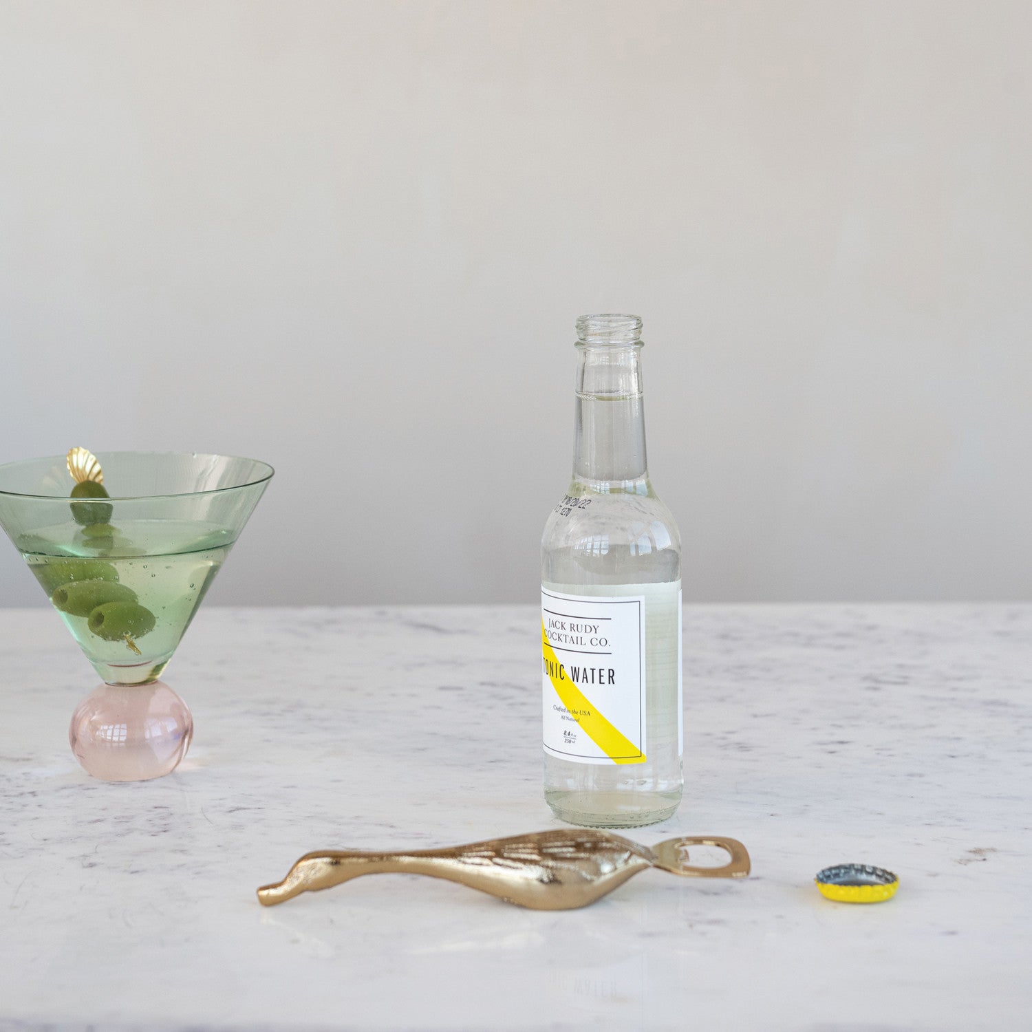 Cast in aluminum with a brushed, golden finish, this sculptural bottle opener brings a touch of whimsy to the bar. Shaped like a small duck with clean, timeless lines, it’s weighty in the hand and designed to last. Both functional and decorative, it adds a quiet sense of humor to any gathering — proof that even everyday tools can have personality.