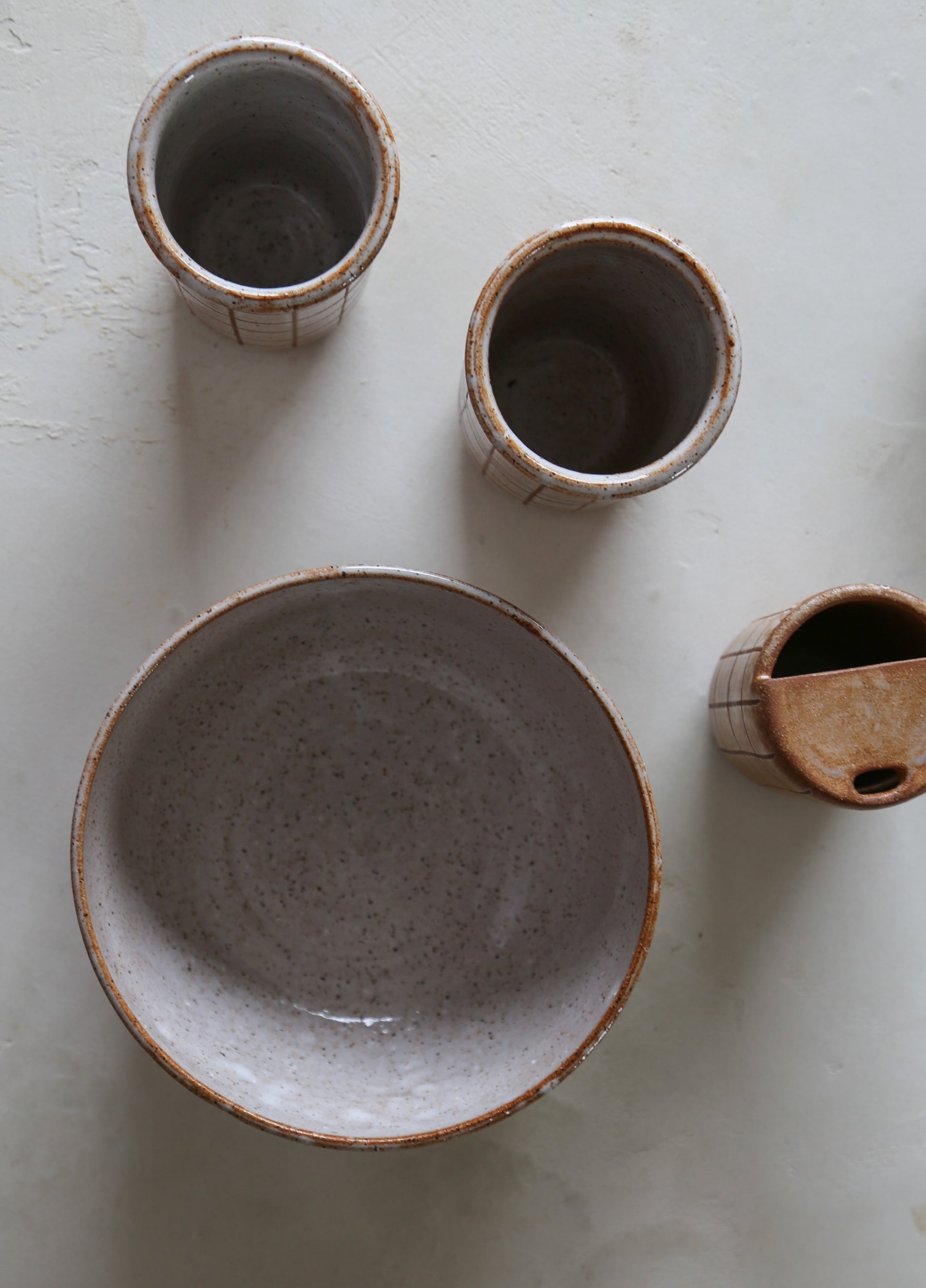 Softly glazed in an airy eggshell tone, this generously sized bowl is perfect for serving, mixing, or standing alone as a centerpiece. Its smooth surface and organic silhouette make it both utilitarian and beautiful — a modern heirloom in the making.