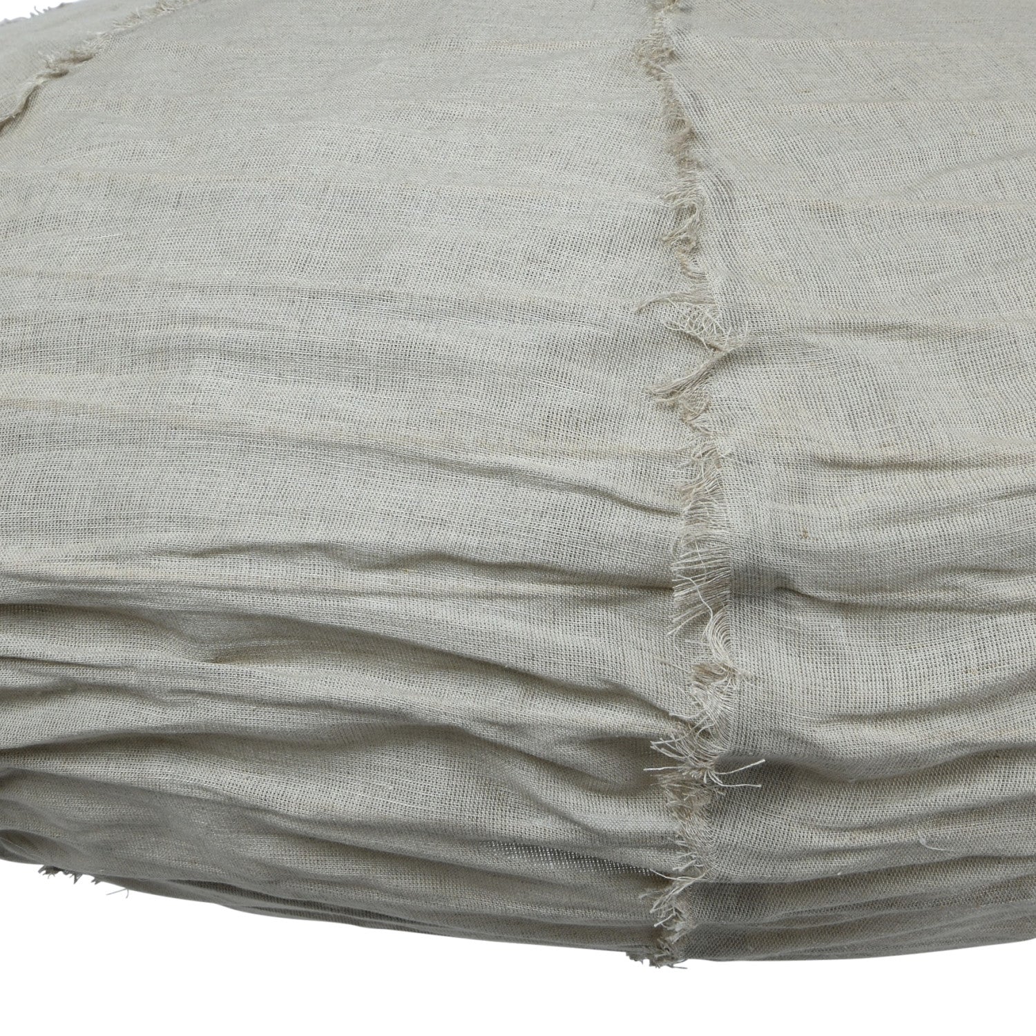 A softly structured pendant light crafted with a natural linen shade and subtle frayed detailing along the edge. The textured fabric diffuses light gently, creating a warm, ambient glow that feels calm and understated rather than decorative.
